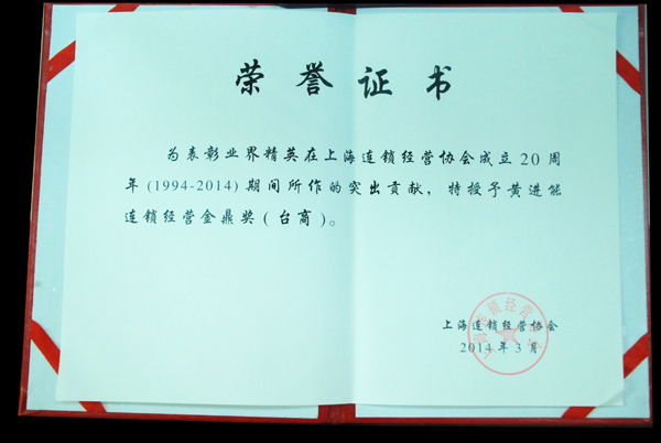 慶典大會上,表彰了一批多年來在開展連鎖經(jīng)營工作中作出突出貢獻的個人和企業(yè)。象王洗衣董事長黃進能獲得“連鎖經(jīng)營金鼎獎”,上海象王洗衣有限公司被評為“金牌連鎖企業(yè)”,象王洗衣澳門店被評為“消費者滿意連鎖店”。