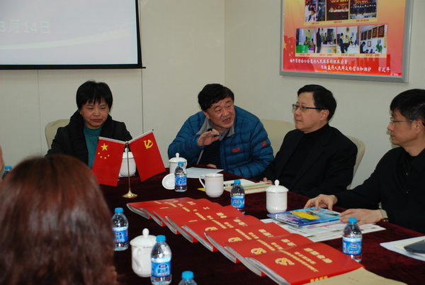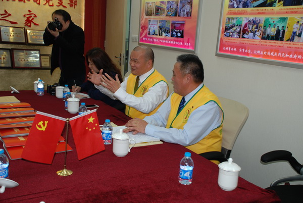 象王支部書記蔡士剛在匯報黨建工作